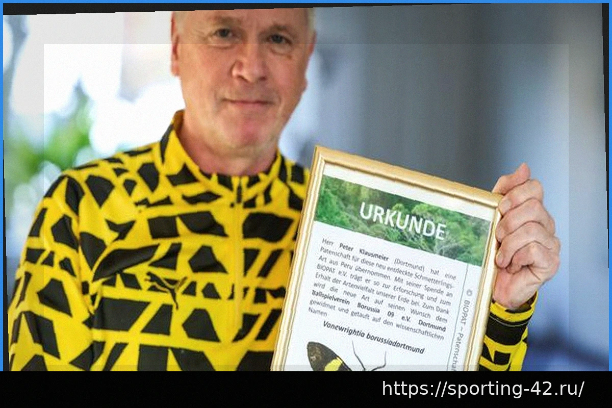 Недавно обнаруженная черно-желтая бабочка из региона Амазонки получила свое название в честь немецкого футбольного клуба «Боруссия Дортмунд». Эта уникальная цветовая комбинация, символизирующая клубные цвета BVB, делает ее идеальным талисманом и символом для фанатской трибуны.