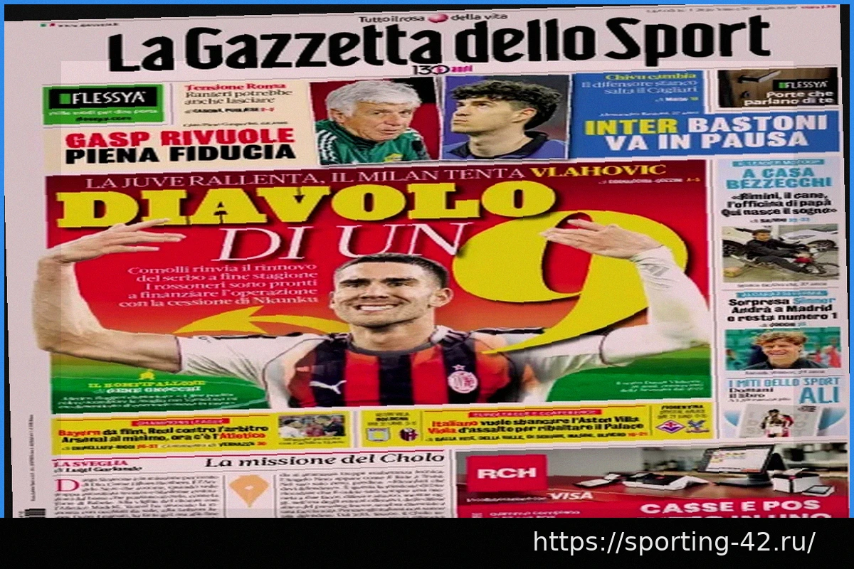 La Gazzetta dello Sport сообщает о напряженной обстановке в Роме, где даже возможен уход Раньери. Гасперини настаивает на полном доверии. В Интере Бастони возьмет паузу, так как устал и пропустит матч с Кальяри. Между тем, Милан проявляет интерес к Влаховичу, рассматривая возможность его трансфера в случае продажи Нкунку. Итальянский тренер Итальянно нацелен на победу над Астон Виллой, а Фиорентина стремится перевернуть ход матча с Кристал Пэлас.