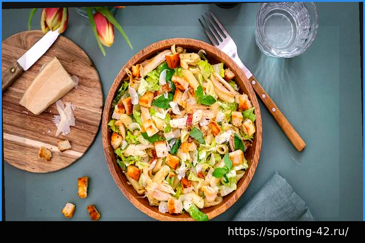 Куриный салат Цезарь с пастой: салат с полноценной начинкой