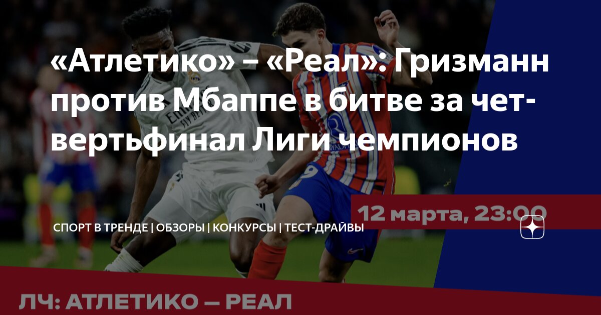 В среду состоится очередной мадридский дерби в рамках Лиги Чемпионов, где “Атлетико Мадрид” примет “Реал Мадрид” в борьбе за выход в четвертьфинал. В первом матче действующие чемпионы, “Реал Мадрид”, одержали победу со счетом 2:1. Небольшое преимущество и напряженный характер первой игры создают интригу перед ответным поединком.