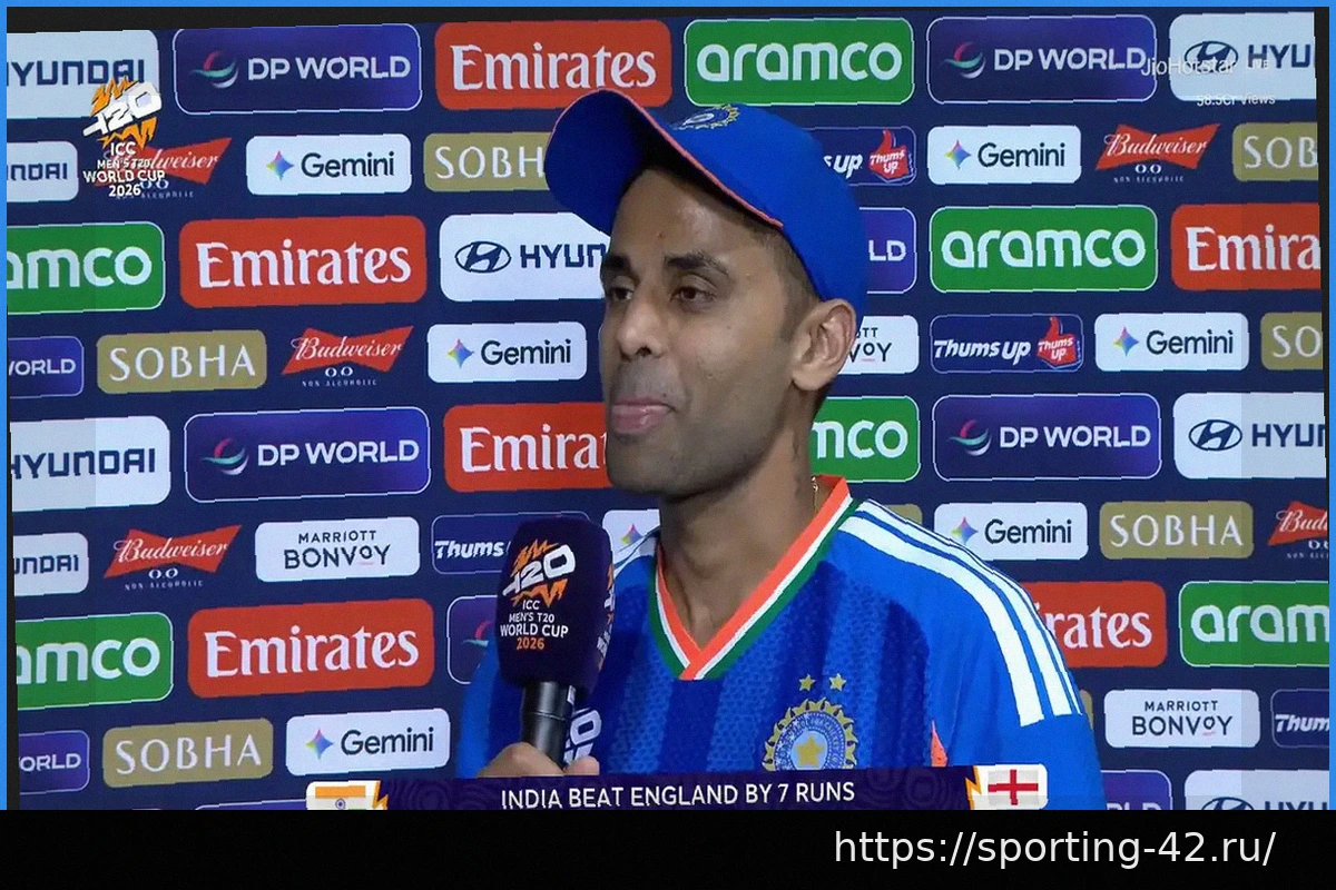 Победа в полуфинале Кубка мира T20 на домашнем поле стала особым моментом для Сурьякумара Ядава. 5 марта Индия одержала победу над Англией с разницей в 7 пробегов, обеспечив себе место в финале.