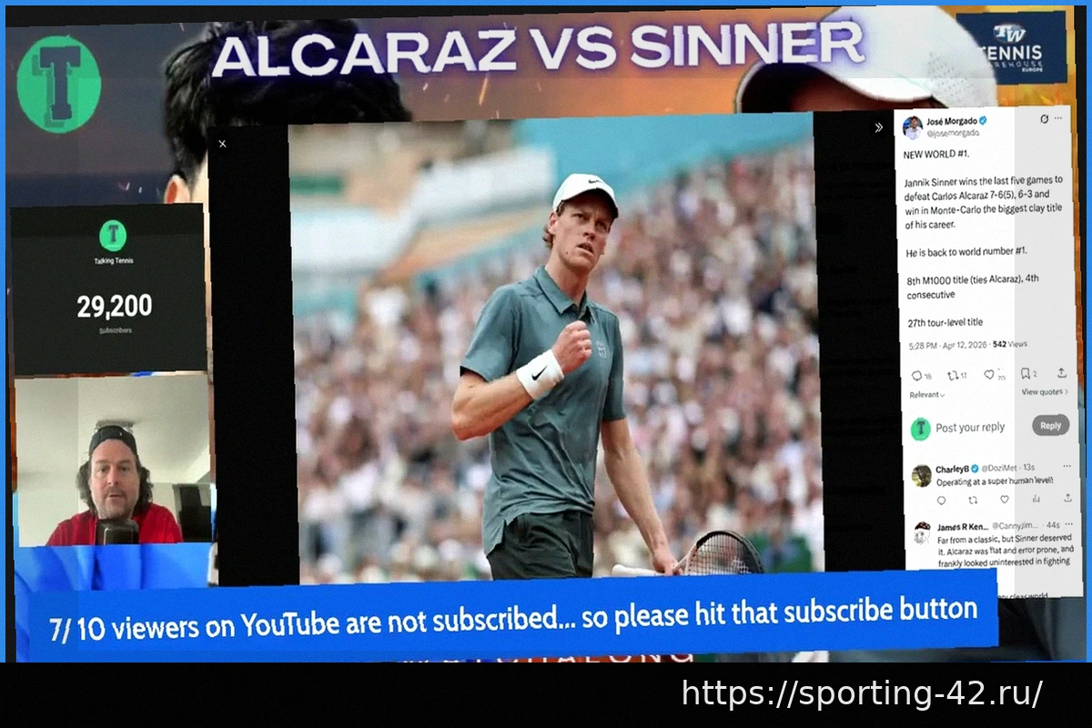 Янник Синнер — новая первая ракетка мира. Итальянский теннисист одержал победу над действующим чемпионом Карлосом Алькарасом со счетом 7-6, 6-3 в воскресенье, завоевав титул в Монте-Карло. Эта победа положила конец 22-недельному правлению его соперника на вершине рейтинга и ознаменовала начало собственного пути Синнера. Для Синнера это 67-я неделя на первом месте, что позволило ему обойти Алькараса, который также провел ровно 66 недель на вершине.