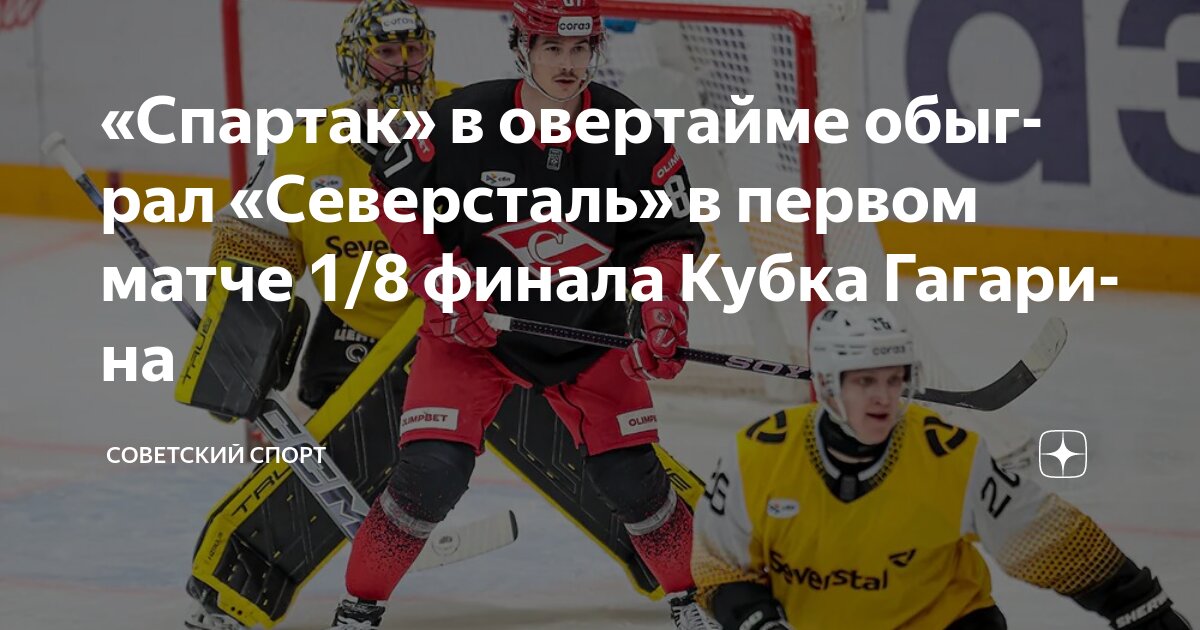 Первый матч серии плей-офф между московским «Спартаком» и череповецкой «Северсталью» выдался крайне напряженным и завершился со счетом 5:4 в пользу хозяев в овертайме. По ходу игры «Спартаку» дважды приходилось ликвидировать отставание в две шайбы. Победную шайбу в овертайме забросил Николай Голдобин, что позволило «Спартаку» повести в серии 1-0.