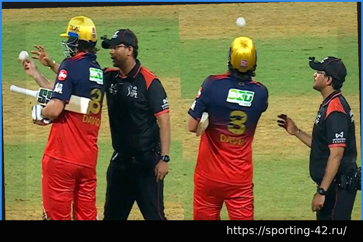 Вся драма развернулась в 18-м овере, когда Тим Дэвид отправил мощный шестираундовый удар от Хардика Пандьи во время подачи RCB на стадионе Ванхеде в Мумбаи. Удар был настолько сильным, что мяч повредился и стал мокрым, поэтому судьи решили его заменить.