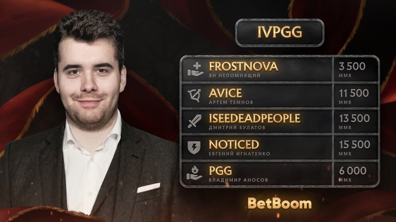 Организаторы турнира BetBoom Streamers Battle 9 по Dota 2 объявили состав команды российского гроссмейстера Яна Непомнящего, которая будет выступать под названием IVPGG. Информация о участниках команды была опубликована в официальном Telegram-канале турнирной серии.